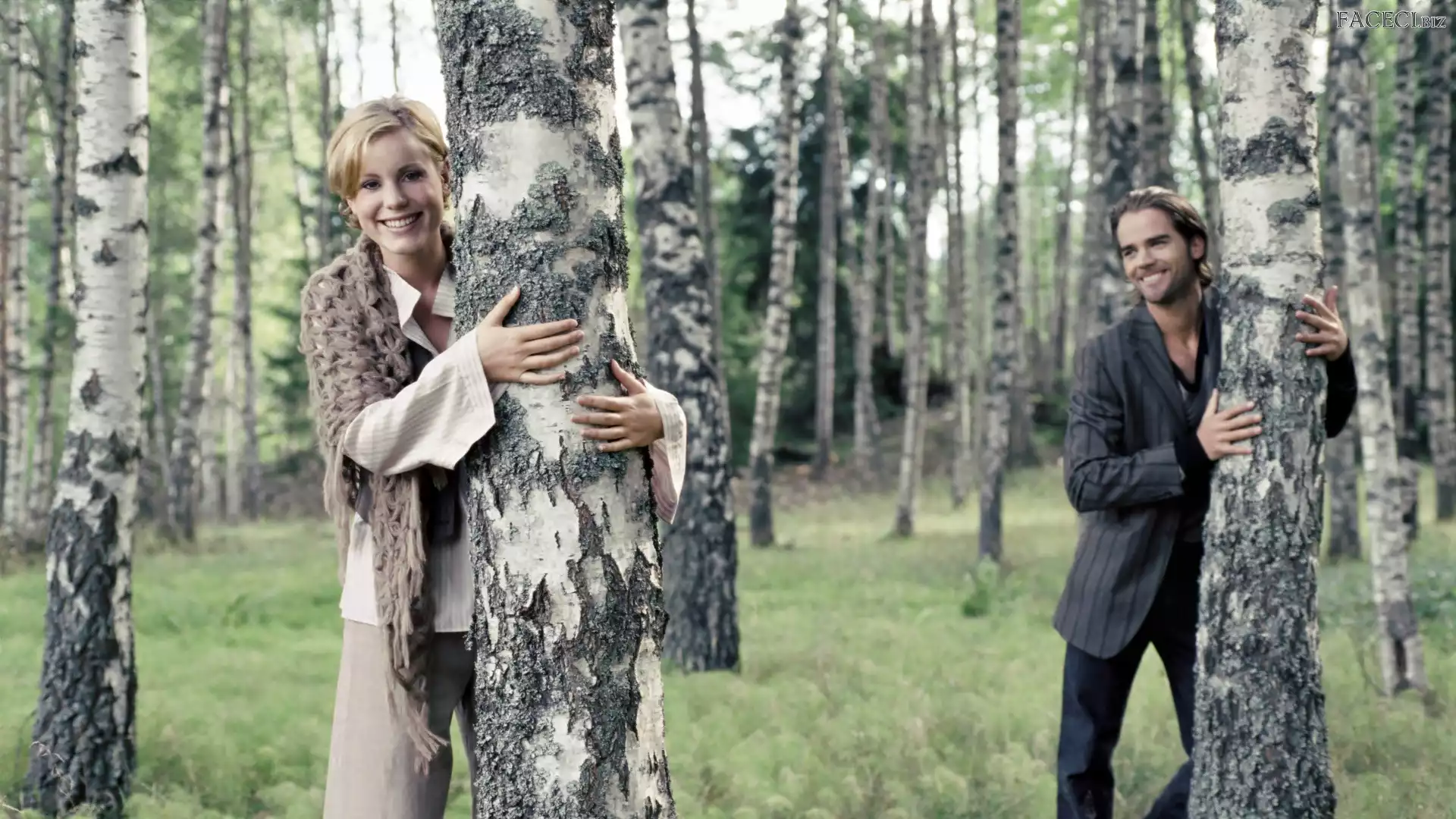 Brzozy, Kobieta, Para, Las, Drzewa, Mężczyzna, Miłość - faceci.biz